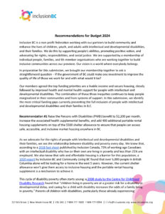 Inclusion BC presented our 2024 Budget Submission this year in person to the Standing Committee on Finance on May 31 in Vancouver to advocate for the rights and opportunities of people with intellectual and developmental disabilities and their families. In preparation for this submission, we brought our membership together to ask a straightforward question – If the government of BC could make one investment to improve the quality of life of those we work for and with, what would it be?