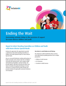 Inclusion BC appreciates the opportunity to provide a submission to the Select Standing Committee on Children and Youth’s Special Project on Children and Youth with Neuro-diverse Special Needs.