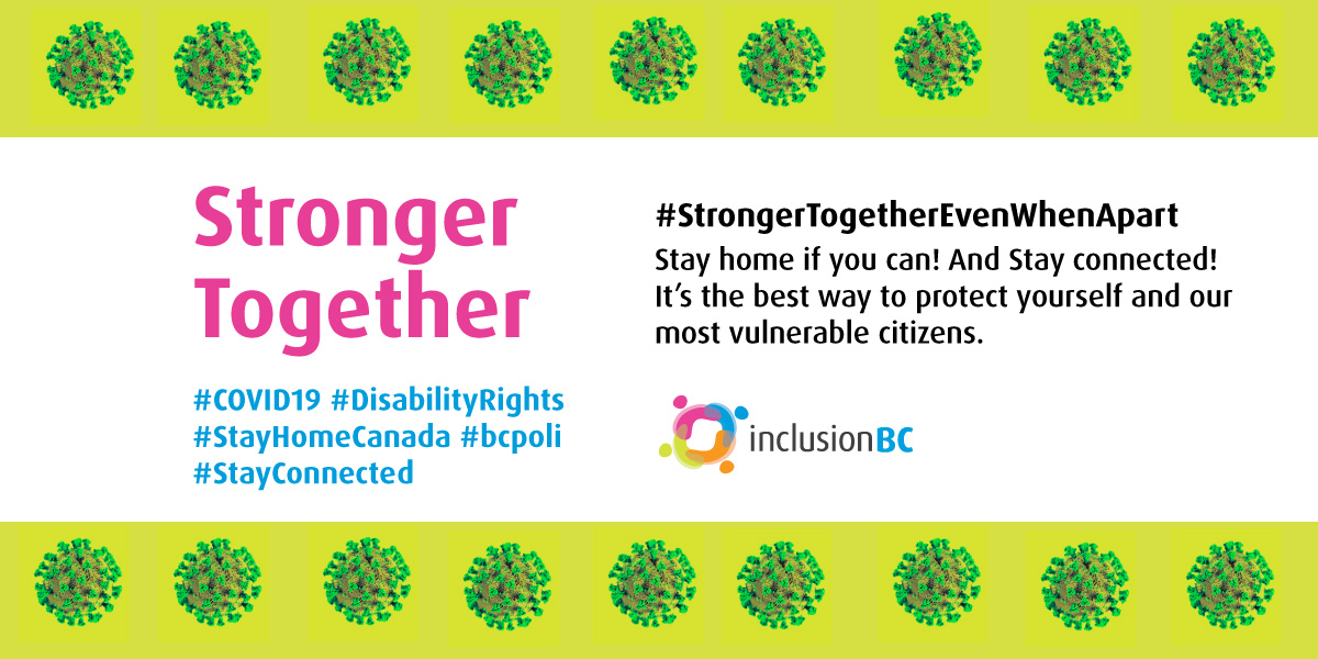 Immediate financial relief is now needed for people and their families. Both the federal and provincial governments have promised that this is coming. Inclusion BC will keep pressing until there is clarity that people will get the financial support they need.