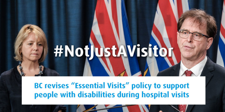 #COVIDdisabilityBC announces the revised "Essential Visits" policy to support people with disabilities during hospital visits. The visit policy now recognizes the special role of families and support staff for patients with disabilities. Plus 5 Things You Can Do