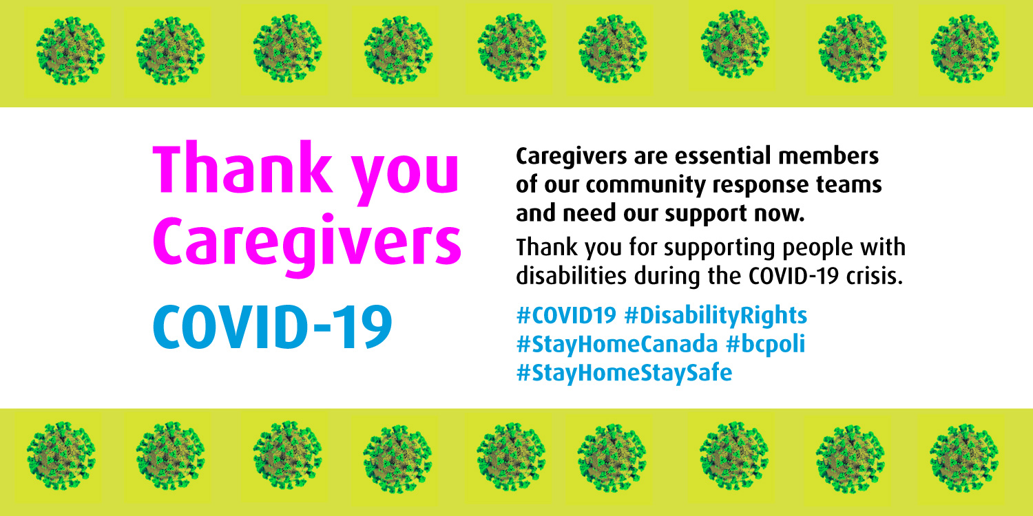 Thank you to all the #Caregivers who are providing support for people with #disabilities during the #COVID19 crisis. Caregivers are essential members of our community response teams and need support now. #DisabilityRights #bcpoli