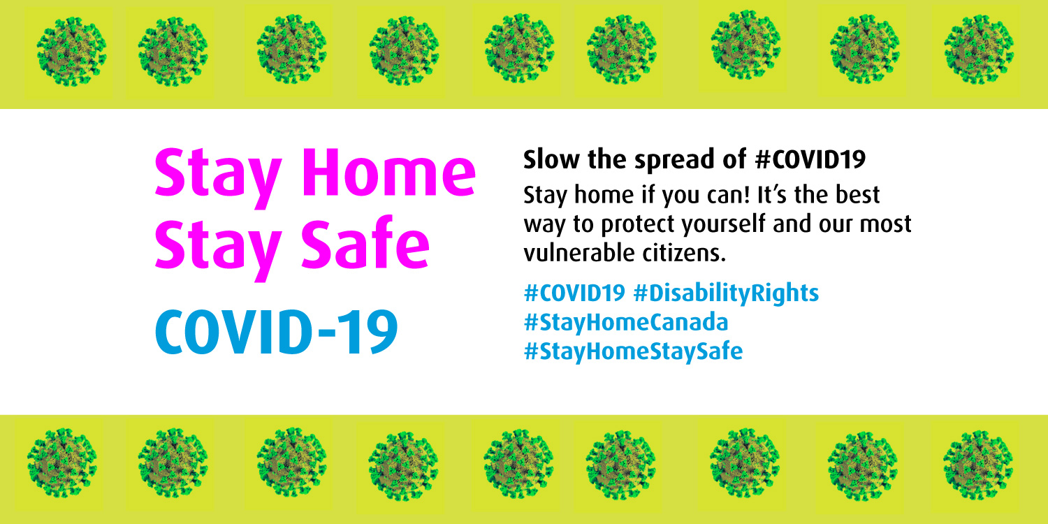 Slow the spread of #COVID19. Stay home if you can! Help protect our most vulnerable citizens. @JustinTrudeau said it, “All Canadians as much as possible should stay home.” We agree! #DisabilityRights #StayHomeCanada #StayHomeStaySafe