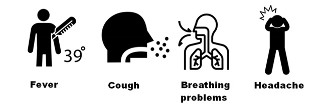 The symptoms are much like the flu and the common cold. These include fever, cough, and breathing problems. Sometimes people will also have a headache.